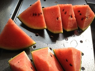 投稿日: 2012年5月8日2015年12月12日 投稿者: motohiroお初の西瓜です 頂き物ですが西瓜、お初です。 これは近所で買って来たもの。 朝のデザート一皿です。 西瓜はすごく甘かった 故に苺はすっぱかった