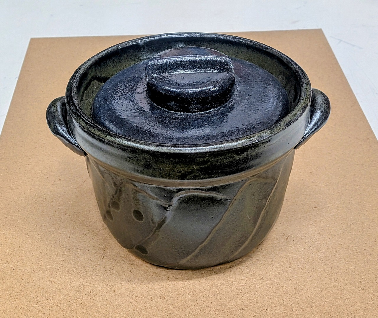 黒釉の落ち着いた艶が美しい、一人用のごはん鍋です。