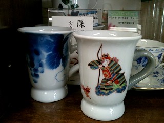 投稿日: 2012年9月22日2015年12月12日 投稿者: motohiro深川製磁 ホットチョコレートカップ 有名窯深川製磁のホットチョコレート用カップです。 弓を携えた武者の絵柄がなかなかいいですね。 熱々の甘ーいホットチョコレートに丁度良いサイズです。 ぶどう柄・武者柄 各 価格 3,990円(税込)